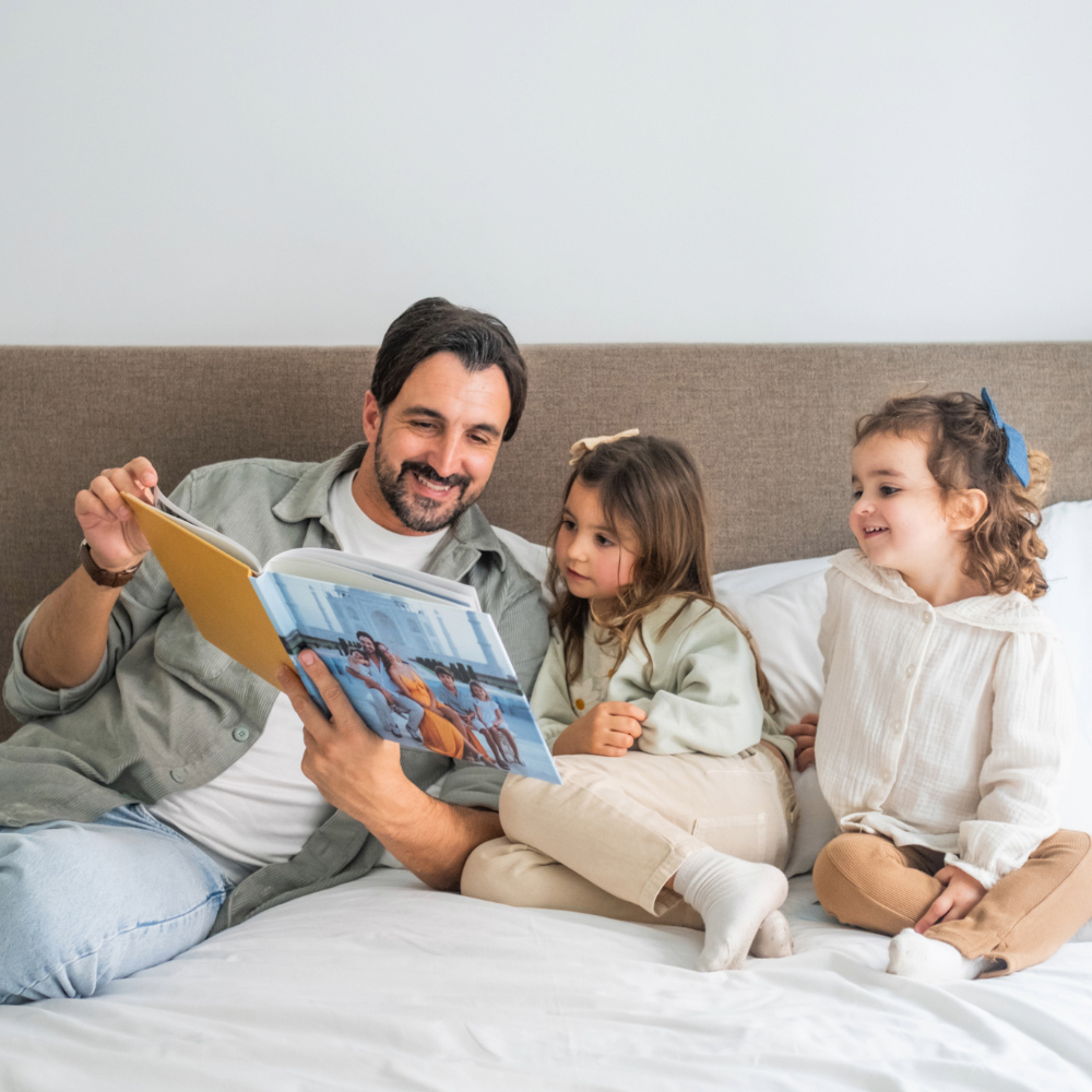 Os Álbuns Press da Dreambooks possuem capas duras feitas de cartão rígido, que são totalmente personalizáveis. As capas são tradicionalmente fotográficas, permitindo a personalização completa com fotografias, textos ou cliparts na capa, contracapa e lombada. A impressão inclui uma laminação matte, que confere um toque e impacto premium, elevando a aparência e a durabilidade do Foto Livro.