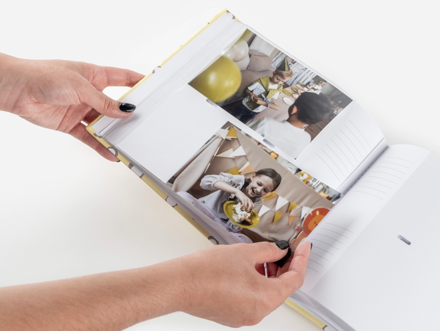 O álbum Pop oferece uma maneira prática e divertida de organizares as tuas fotos favoritas. Todas as páginas incluem espaço para anotações, para que possas adicionar detalhes e histórias que tornem as tuas fotos ainda mais memoráveis.