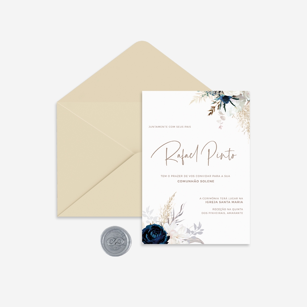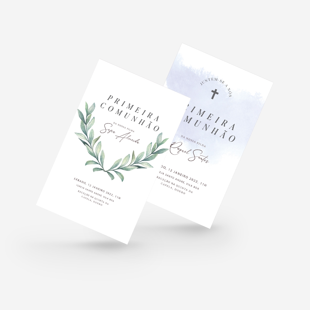 Os teus Convites de Comunhão serão impressos em papel tintoretto, que oferece alta qualidade, conferindo um aspecto único e artístico a cada impressão.